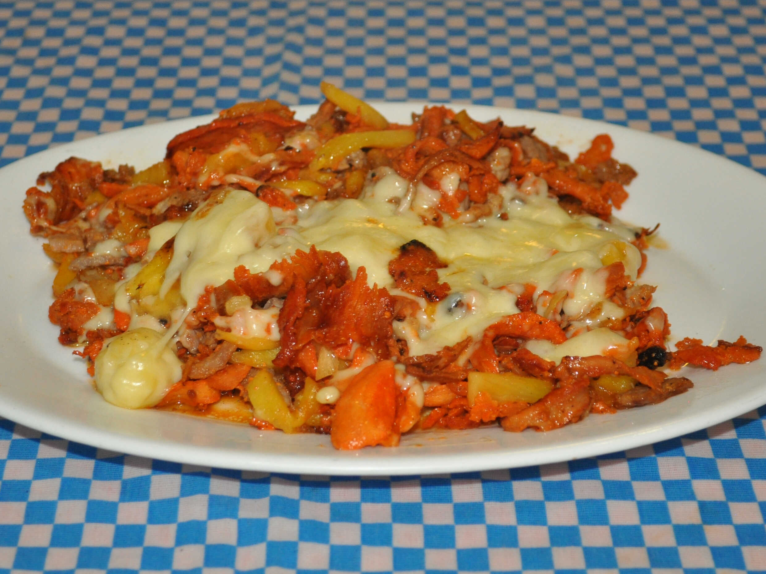 Bistec, chorizo, tocino y queso.