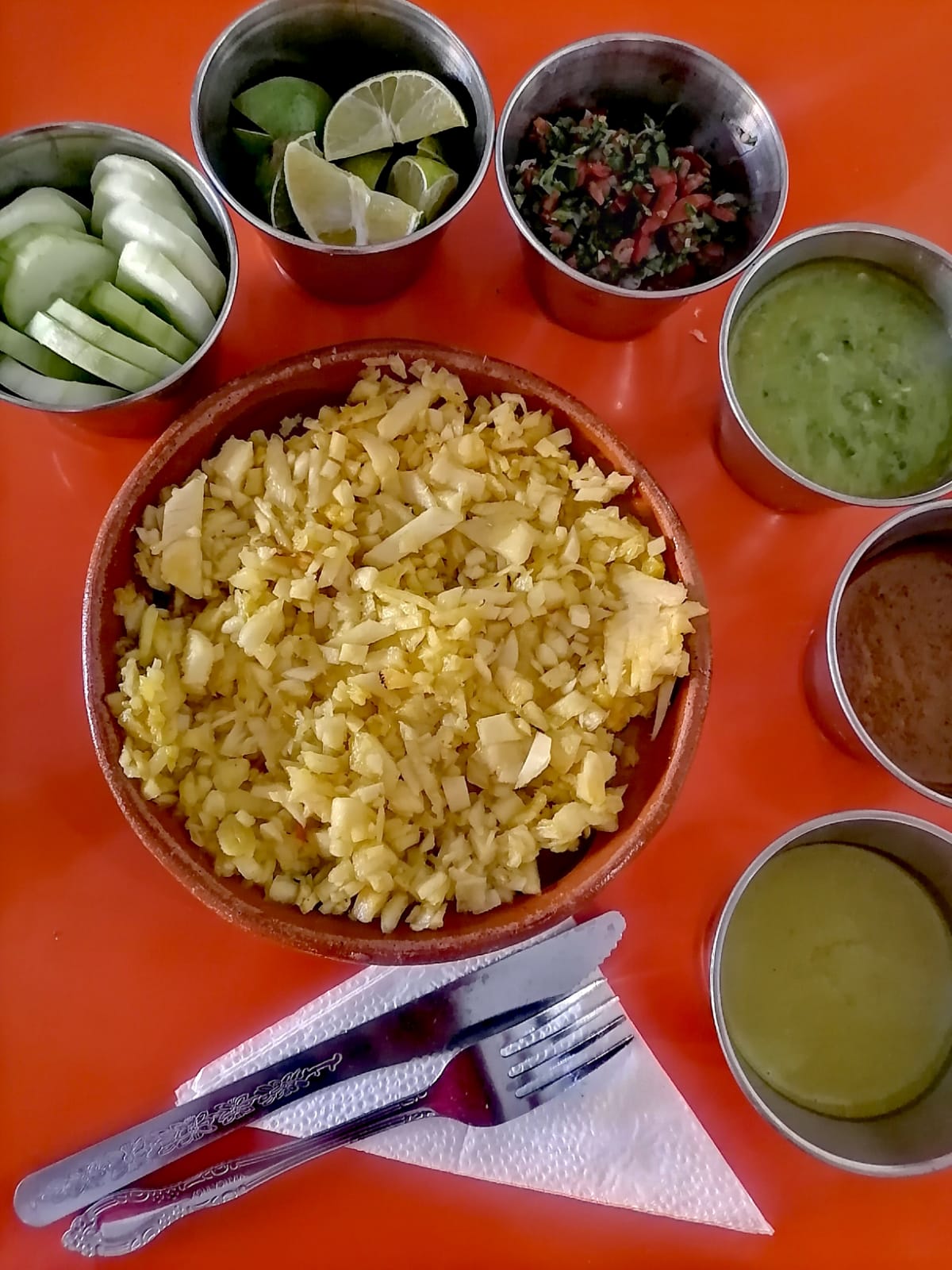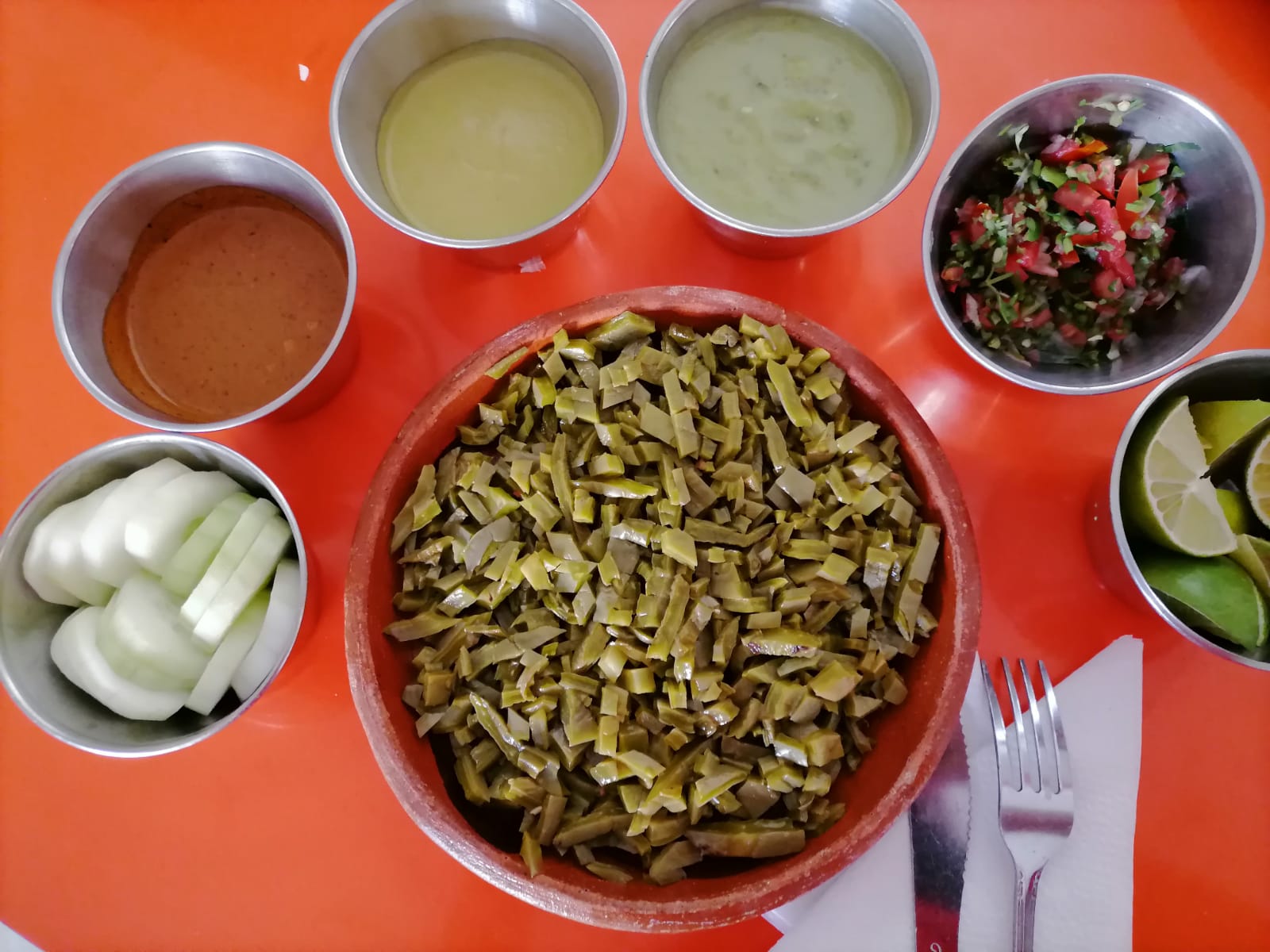 Incluye nopal, jitomate, cebollita, queso y aguacate.