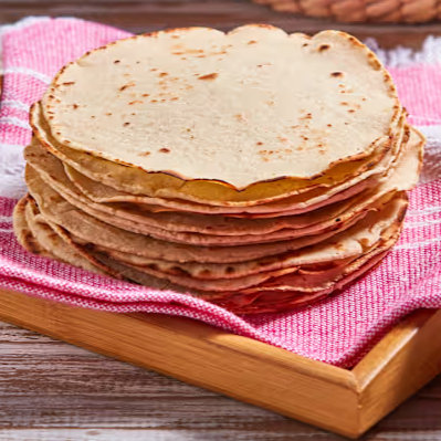 2 Tortillas de harina como base, con carne de pastor y queso fundido, cilantro, cebolla y piña.