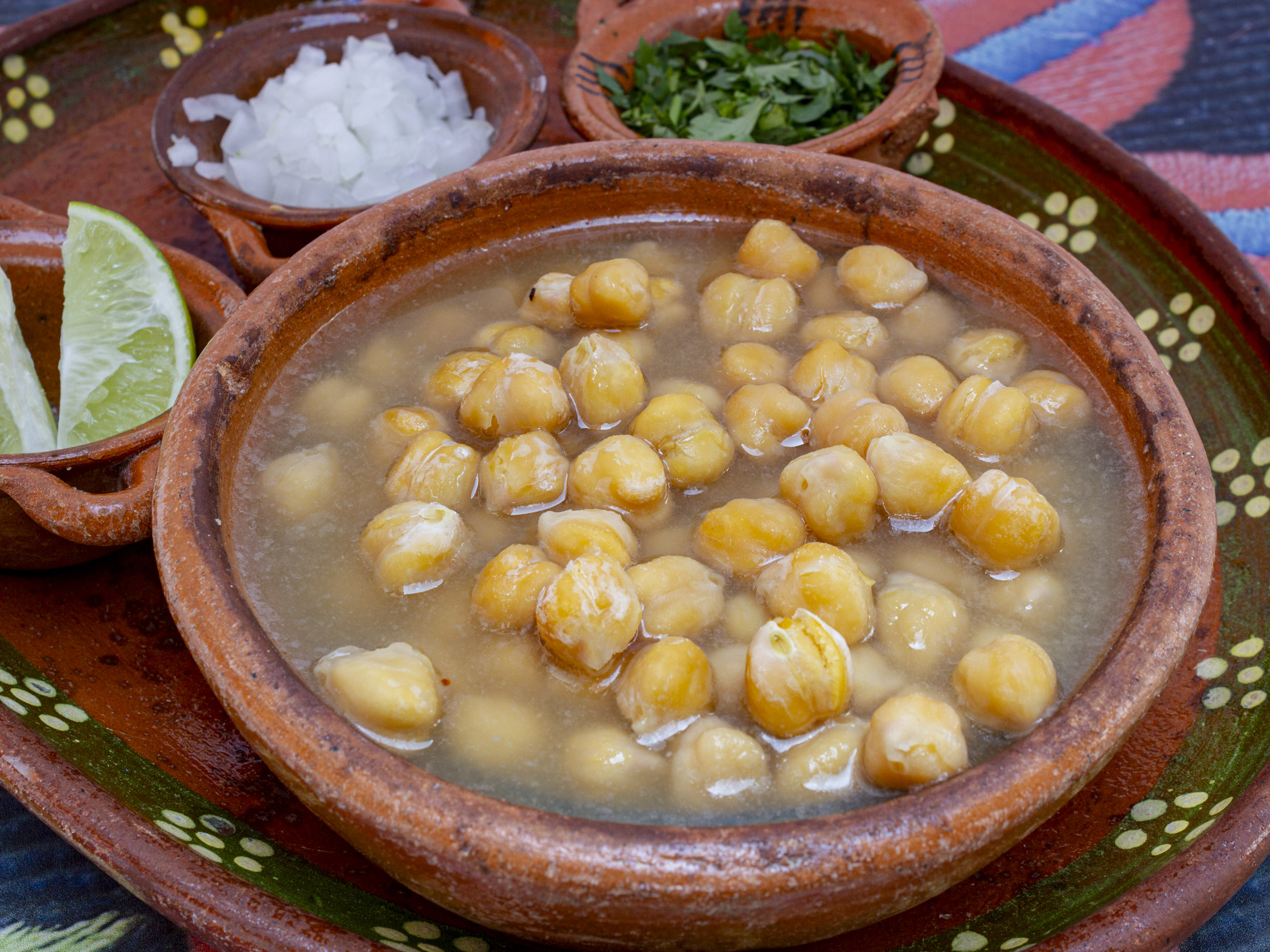 Maíz pozolero cocinado en caldo de pollo con pechuga desmenuzada. Se envían por separado lechuga, limones, cebolla picada, rábanos, chile molido y orégano.