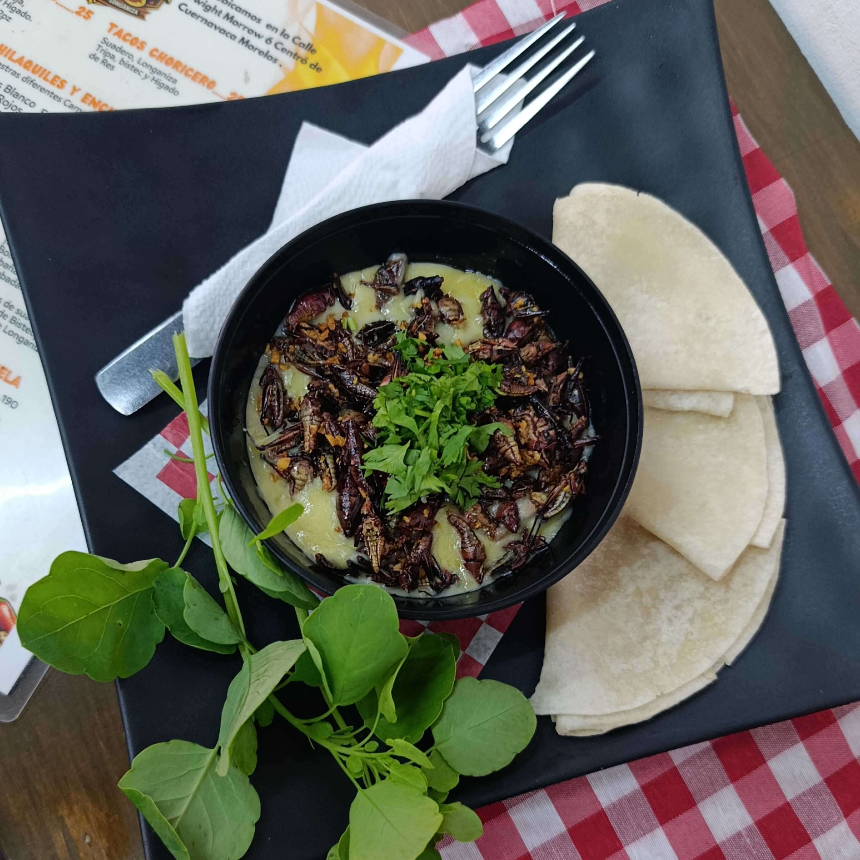 A elegir proteína: Suadero, Longaniza, Chapulines, Hígado.