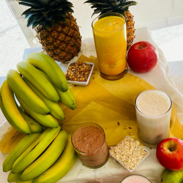 Naranja, apio, espinaca, nopal, piña y perejil.