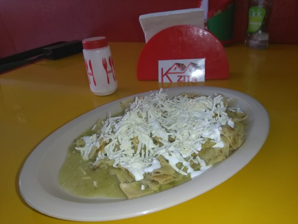 Plato con chilaquiles, incluye crema y queso.