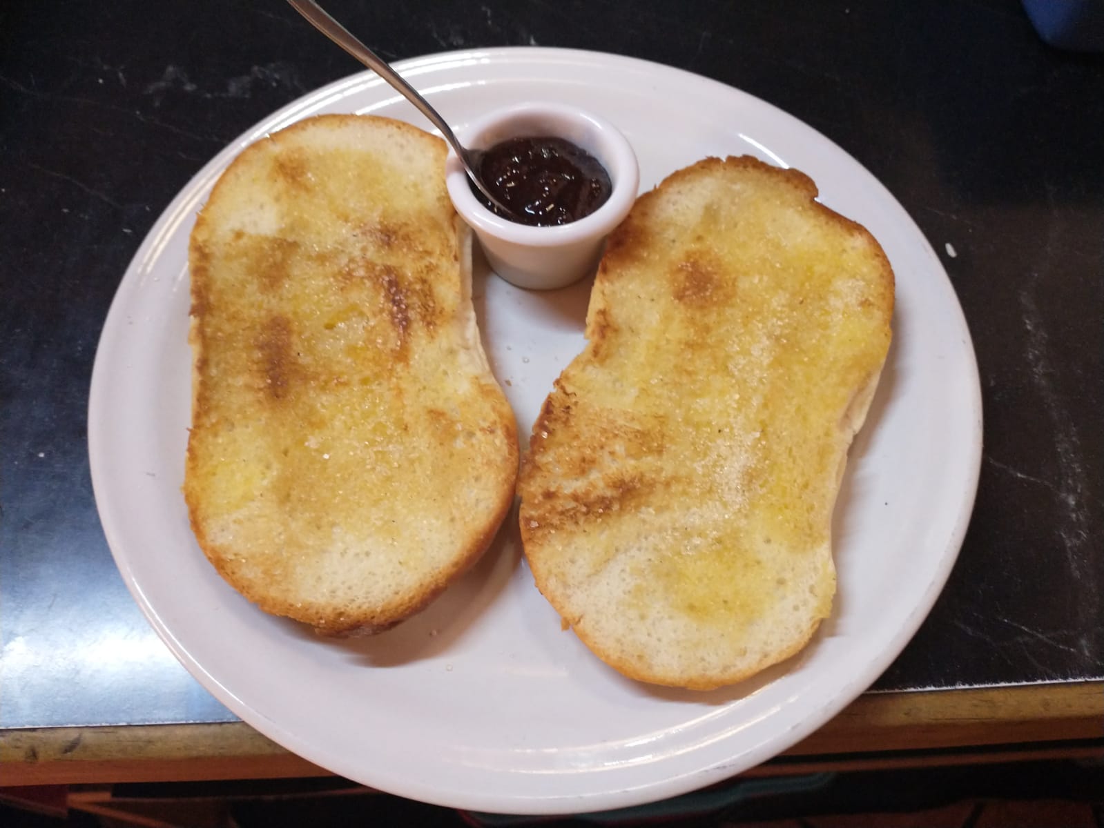 Desayuno #3; queso con chorizo y rajas poblanas montadas.