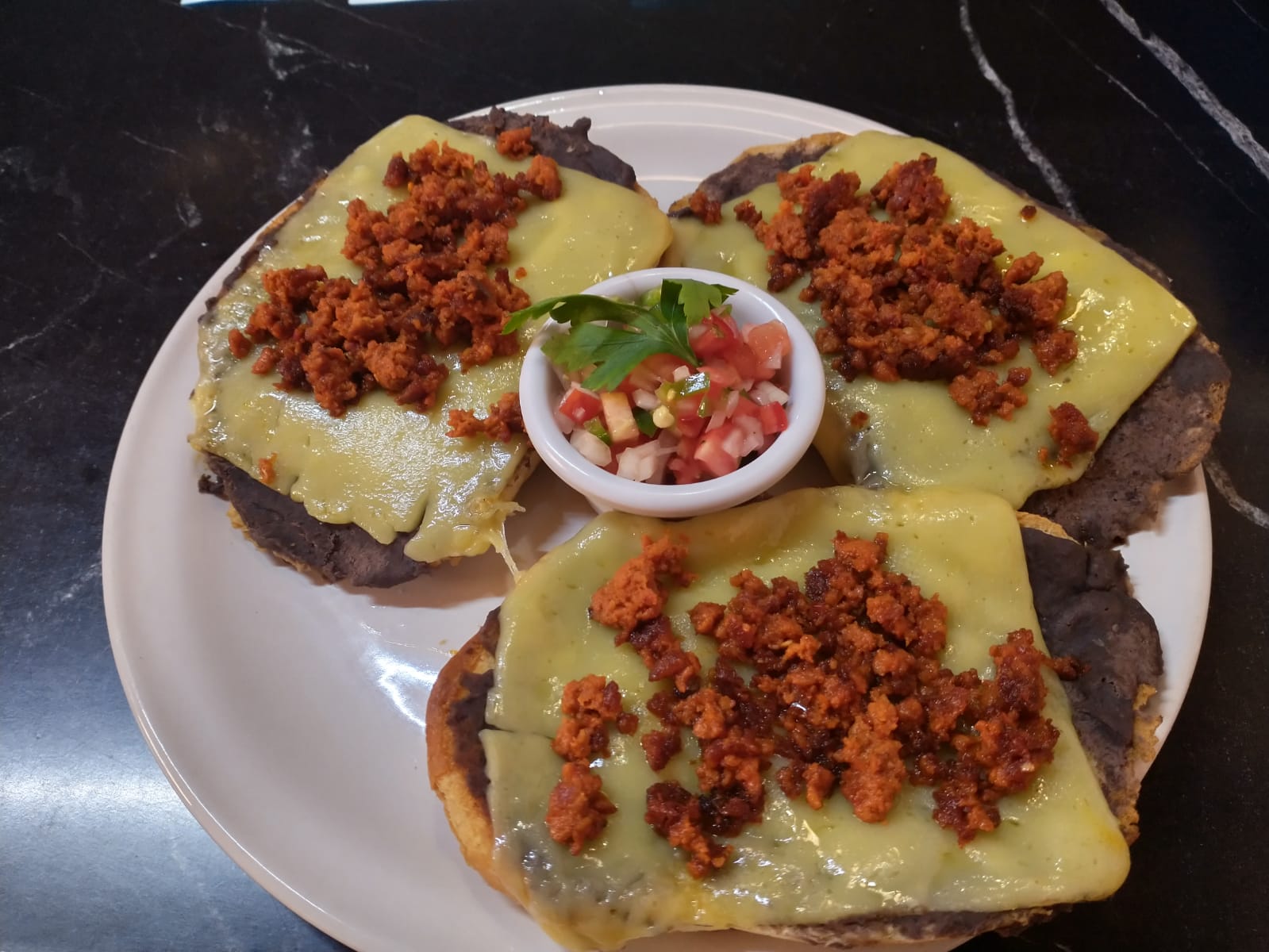 Suculentos 2 Molletes con Chilaquiles Rojos, Pollo