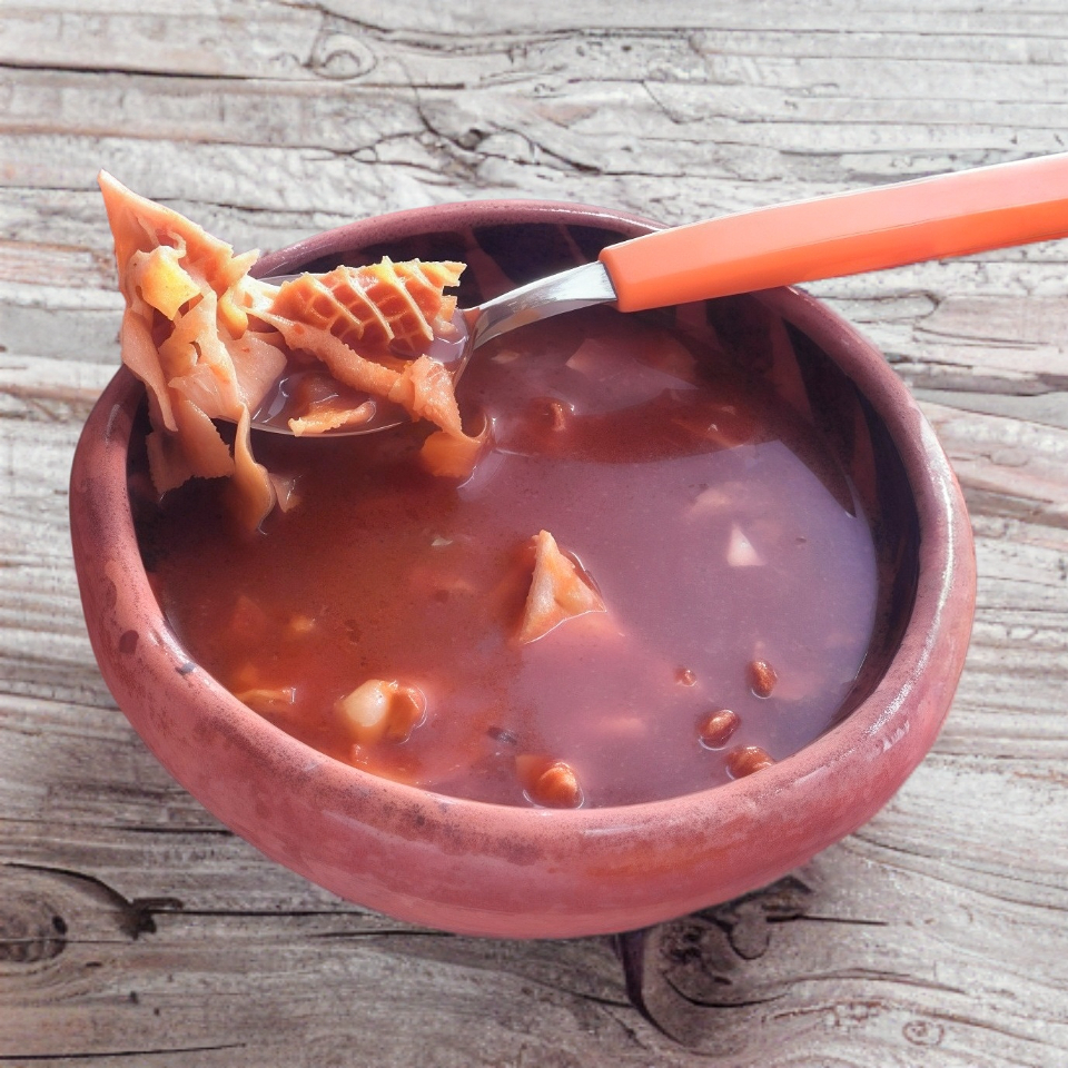 Consomé acompañada de 3 tortillas de maíz hechas a mano y condimentos. Vaso de un litro