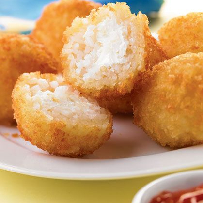 BOLAS DE ARROZ RELLENAS DE QUESO CREMA FRITAS
