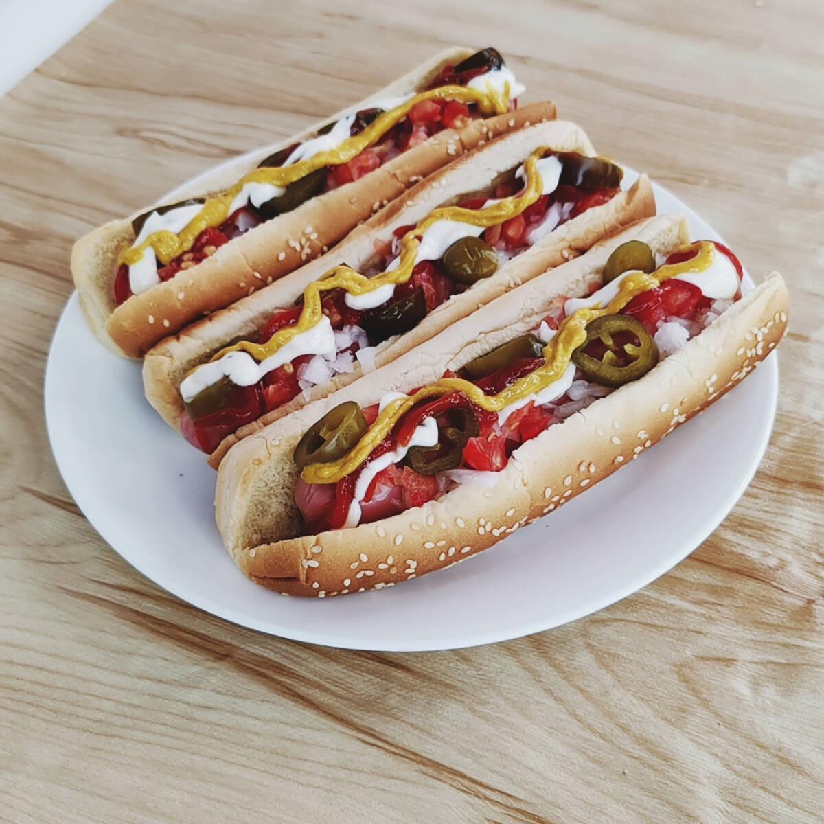 Tres Hot Dogs Preparados con Tocino y Salchicha Jumbo.