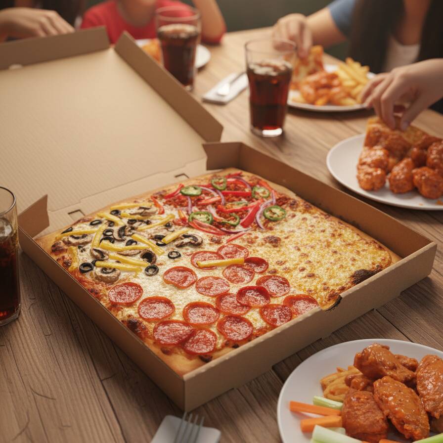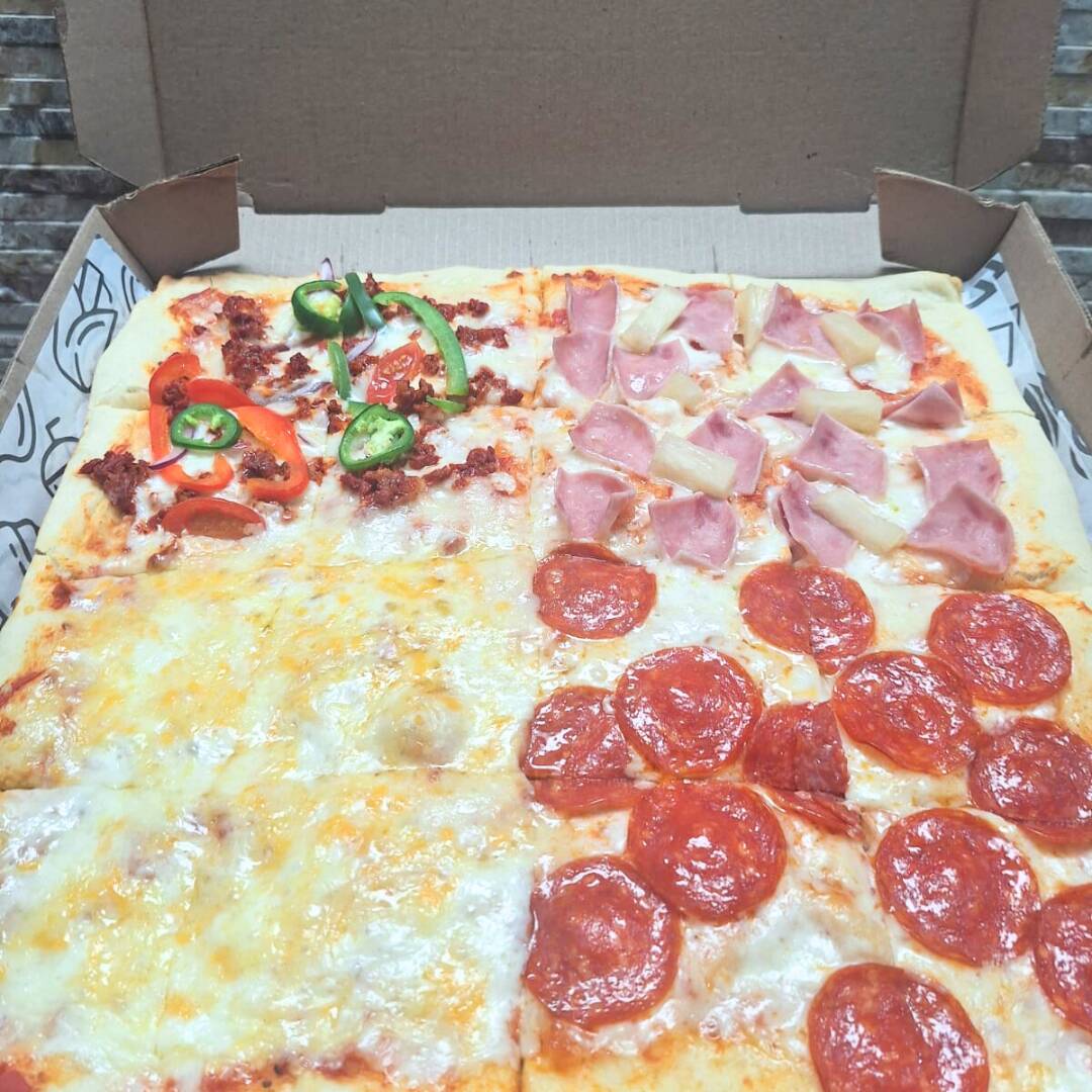 Pizza de 35x35 Cm. Con 4 Estaciones a Elegir.