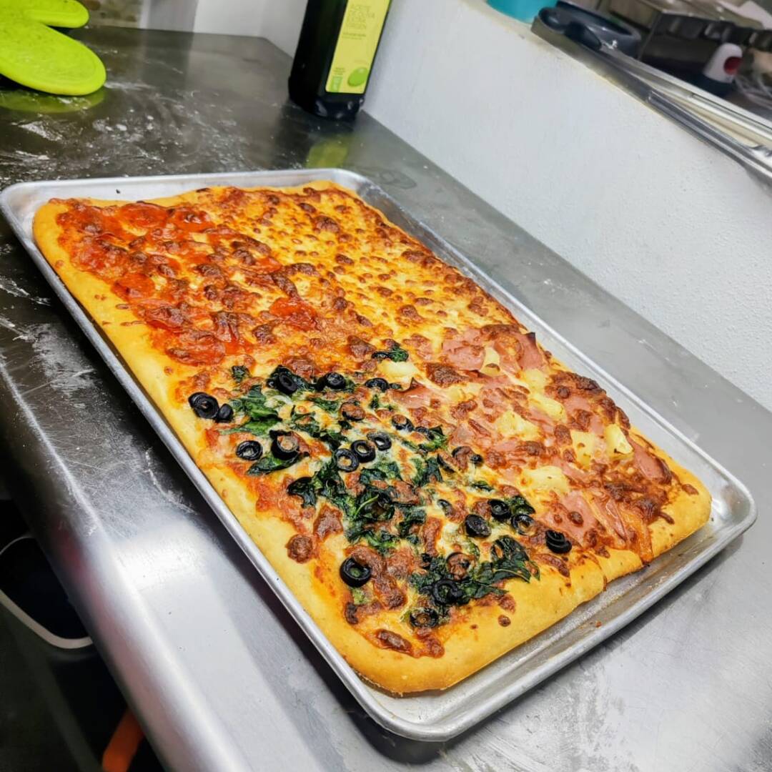 Pizza de 45x35 Cm. Con 4 Estaciones a Elegir.