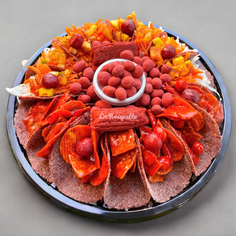 Con mix de cacahuates más tiritas de tamarindo bañada con chamoy.