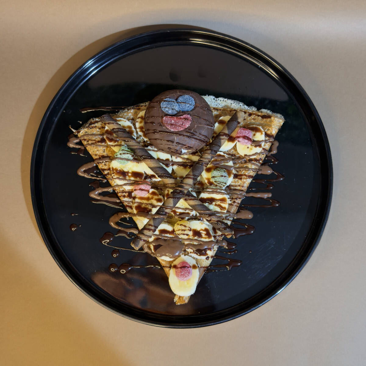 Nutella, platana o fresa, hersheys, lunetas y crema batida