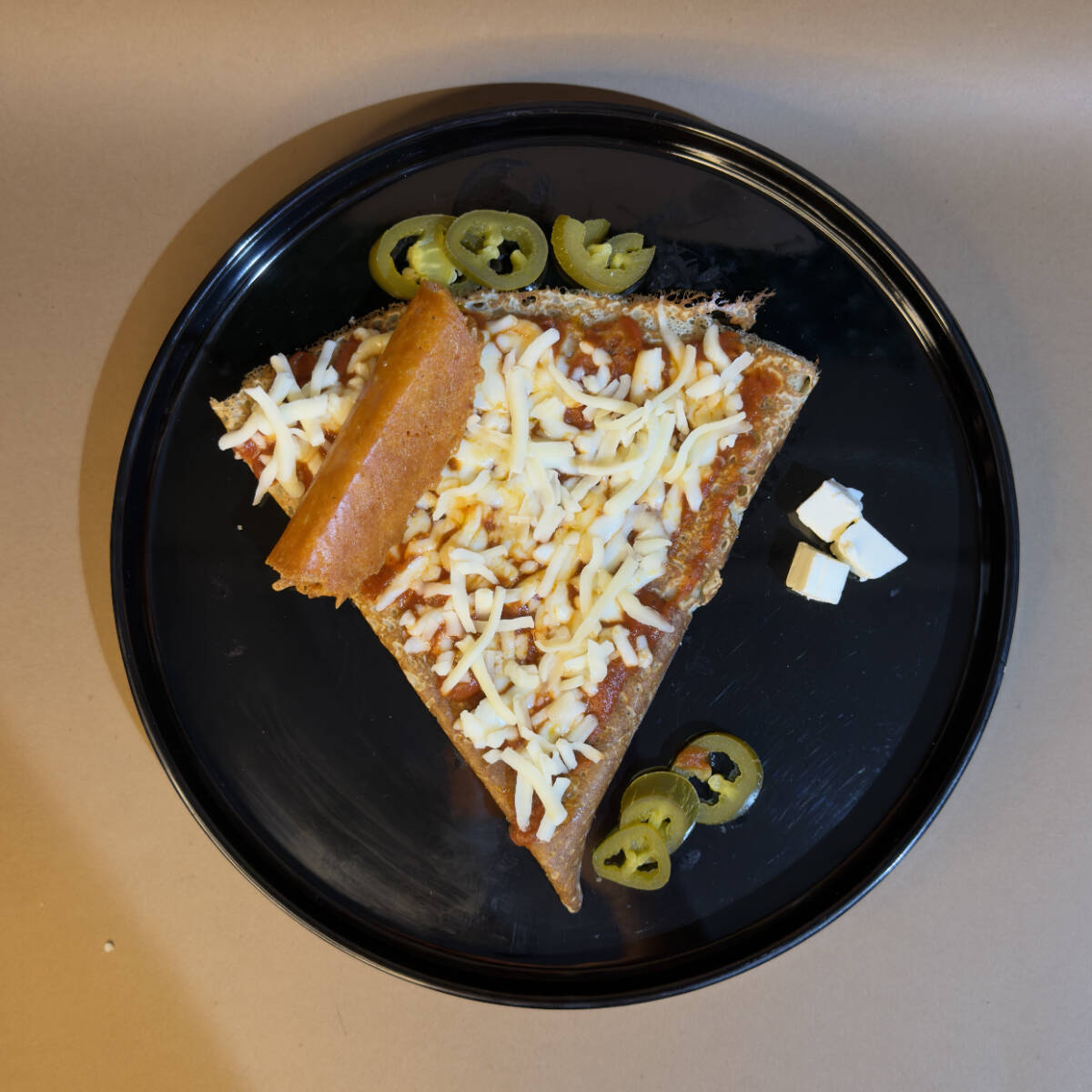Salsa italiana, queso philadelphia, queso mozzarella y costra de queso manchego