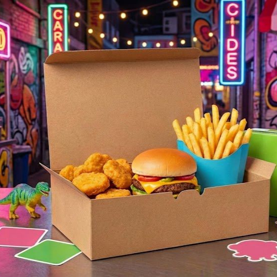 Incluye Callejerita (hamburguesa con carne y queso fundido), porción de 4 nuggets de pollo crujientes y 1/2 porción papas felices (francesa )Perfecto para los más pequeños aventureros que quieren comer como los grandes..