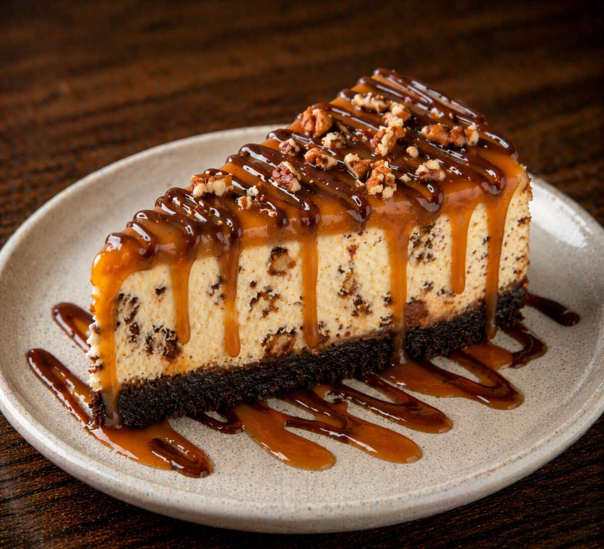 Pastel de queso cremoso con base de galleta y acabado suave.
