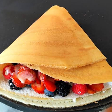 Crepa tortilla de harina de crepa con mermelada de fresa