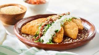 Quesadillas de rajas con queso oaxaca, lechuga, crema y queso. Salsa verde y roja.