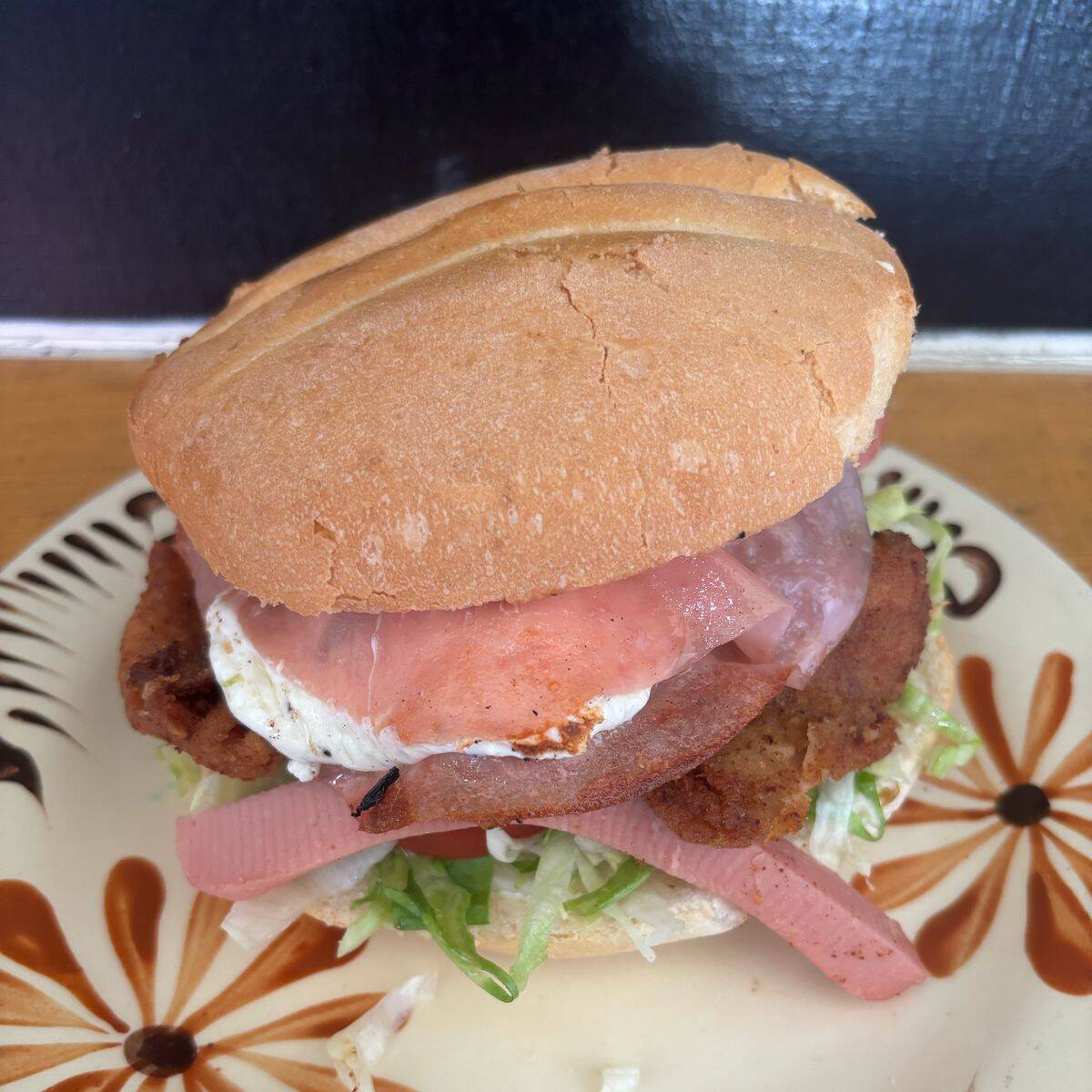 Preparada con mayonesa, frijoles, lechuga, jitomate, salchicha, jamón, milanesa y queso oaxaca