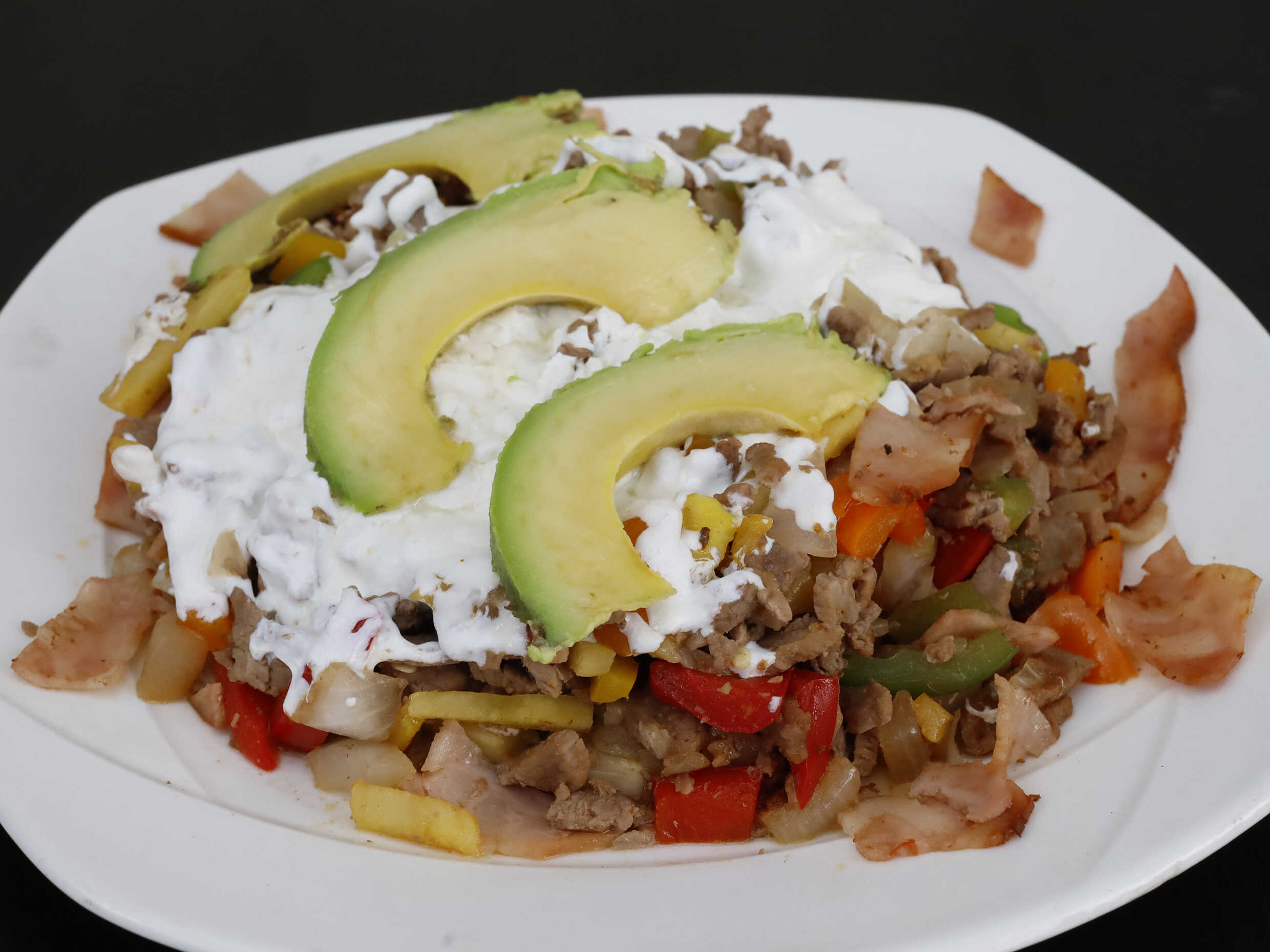Bistec de res, chuleta, cebolla, queso, jitomate, aguacate, especificar ingredientes no deseados por nota.