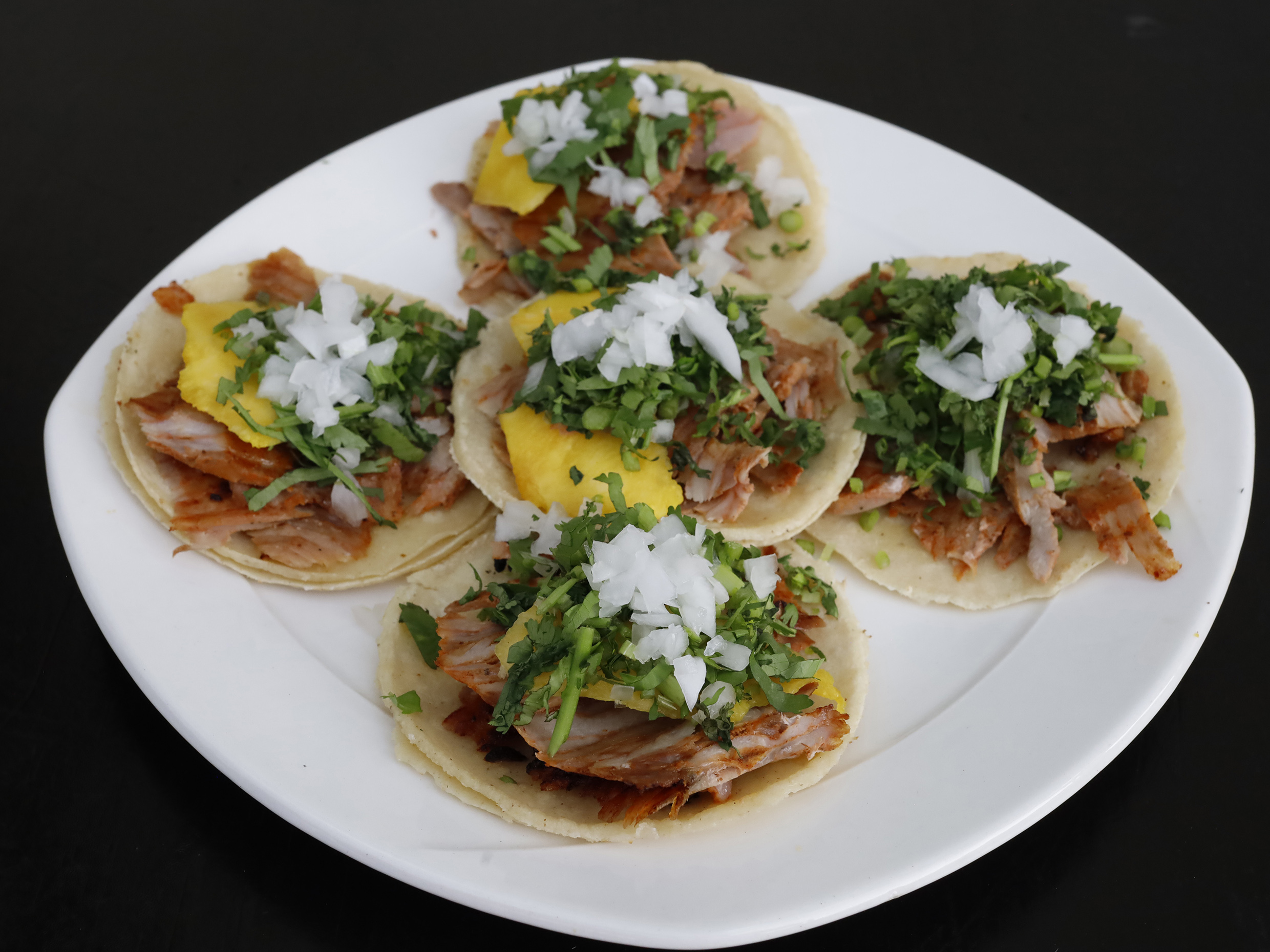 Pastor, longaniza, bistec, costilla, queso, piña, aguacate.