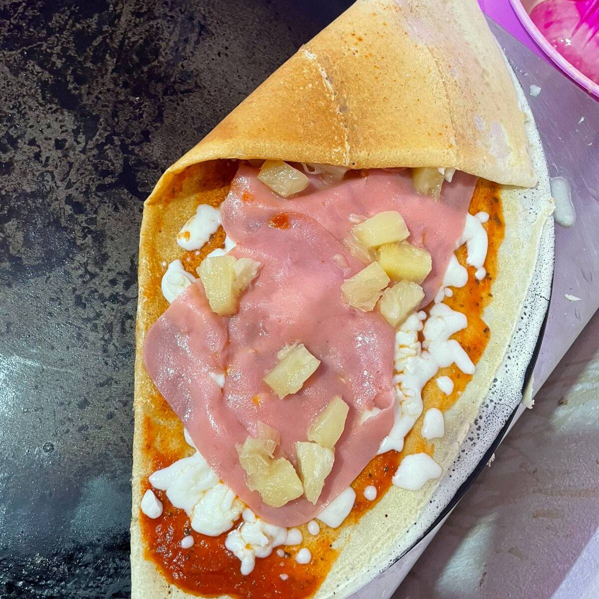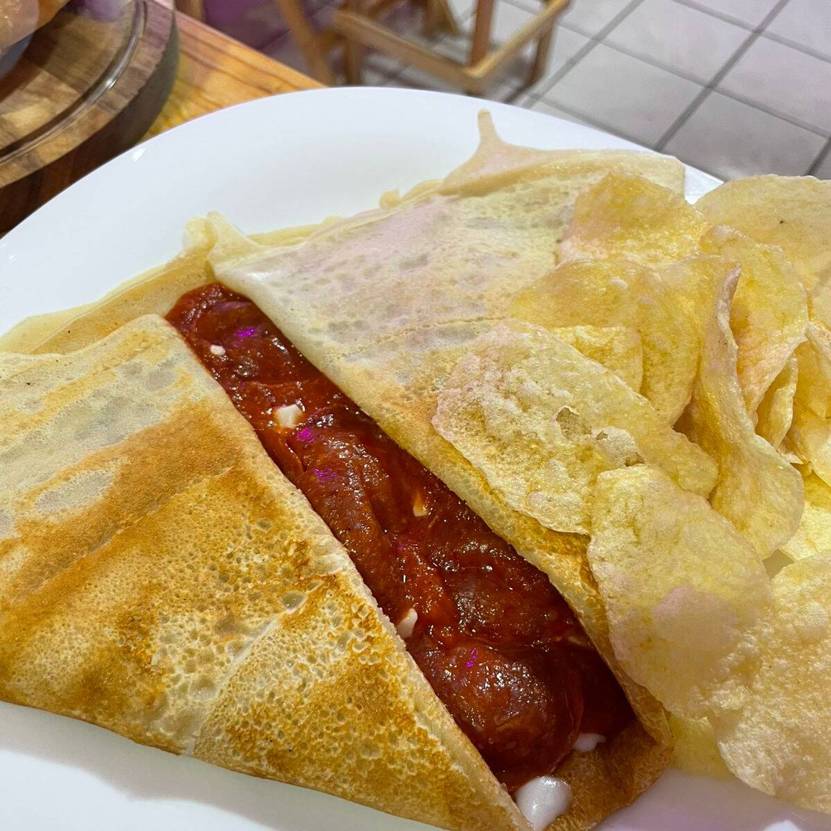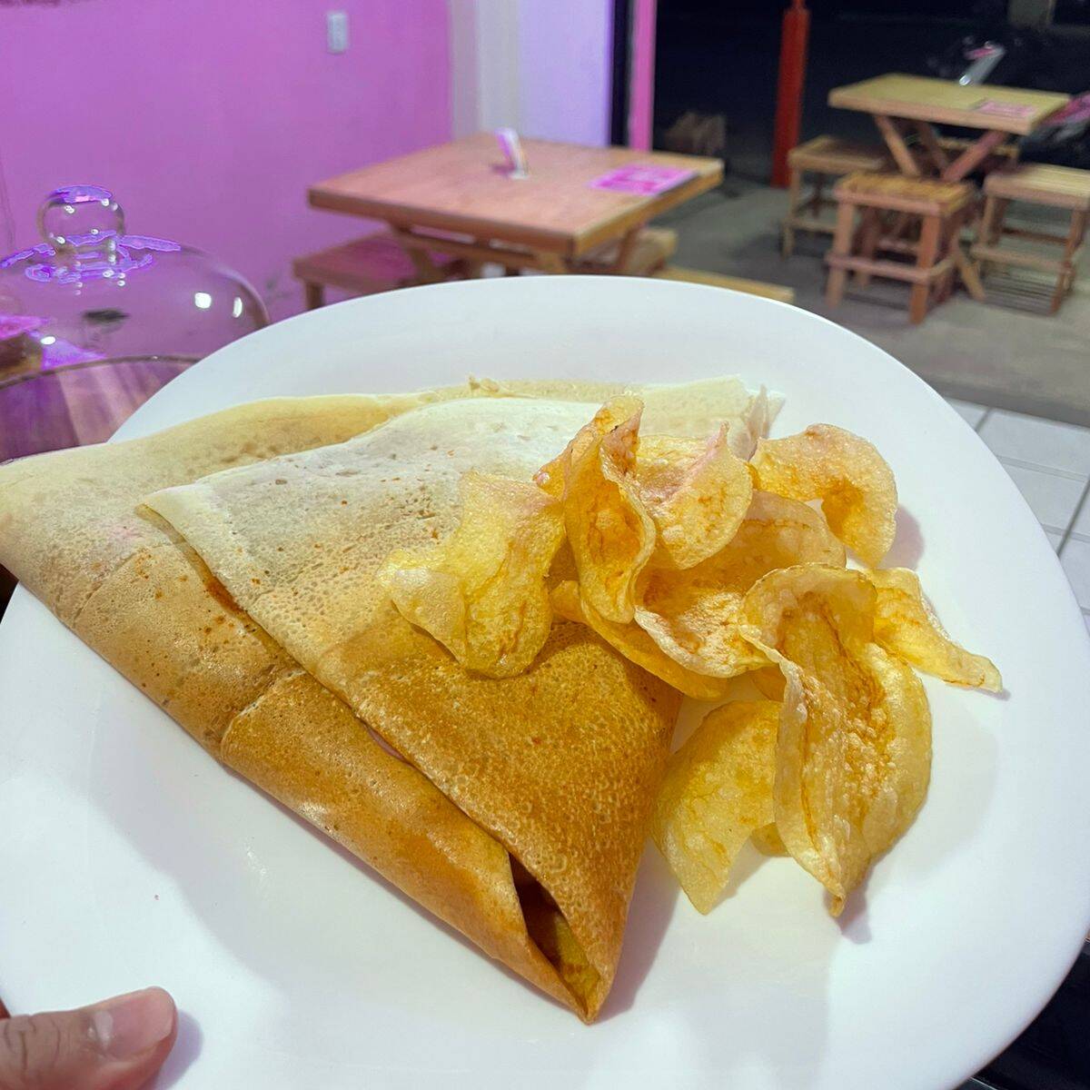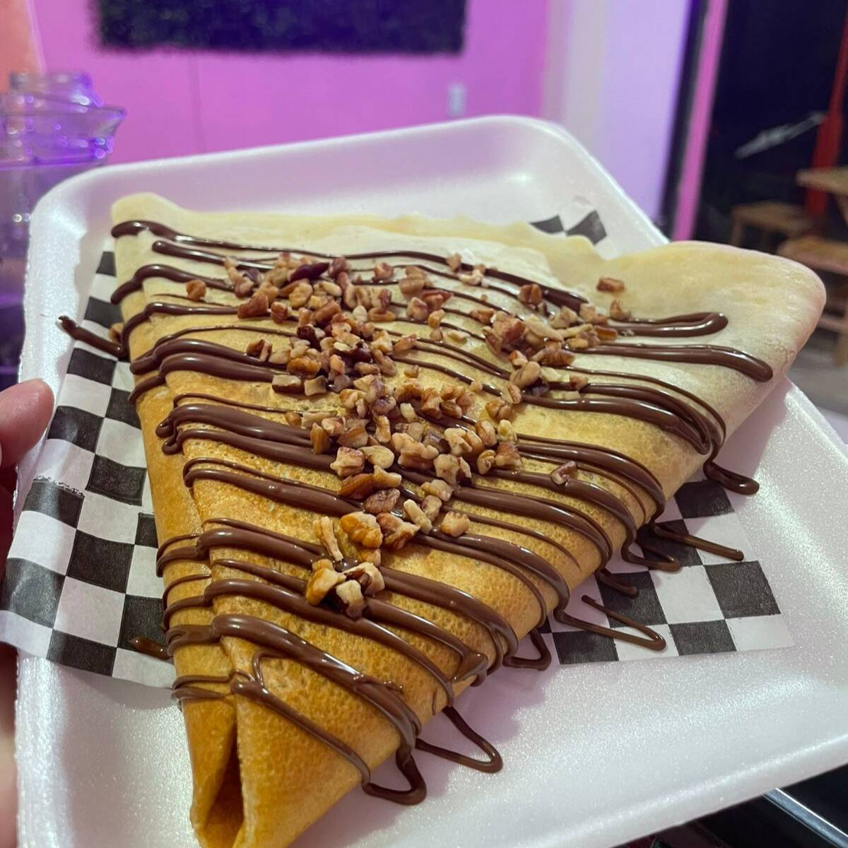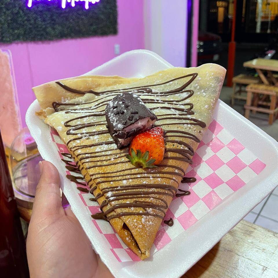 Crepa dulce con Nutella, queso crema, fresa natural y gansito.
