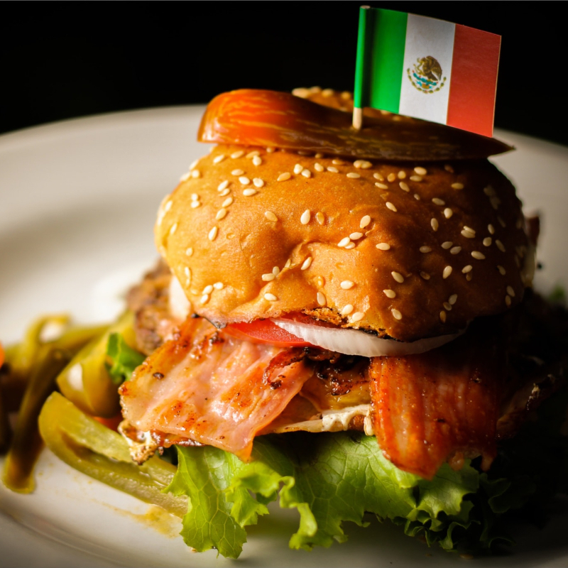 Carne de res, tocino, jamon, queso oaxaca y piña.
