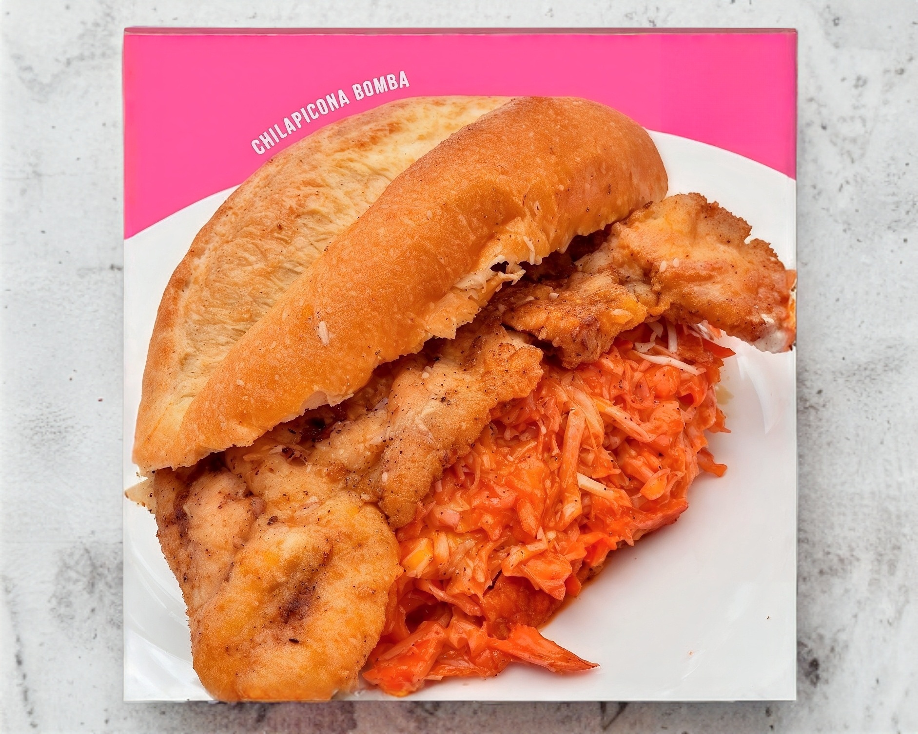 Bolillo con frijoles refritos, milanesa de pollo y cochinita pibil.