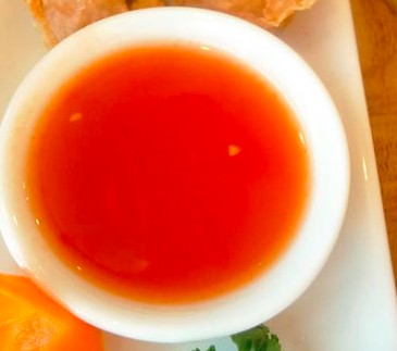 Pasta de cangrejo, aguacate y queso philadelfia por dentro, kakiague por fuera, servido con salsa dulce, ajonjolí, soya y chiles.