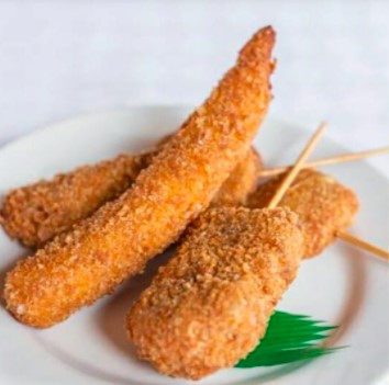1 Pieza kushiague queso, 1 pieza kushiague plátano con queso y 1 pieza kushiague plátano.