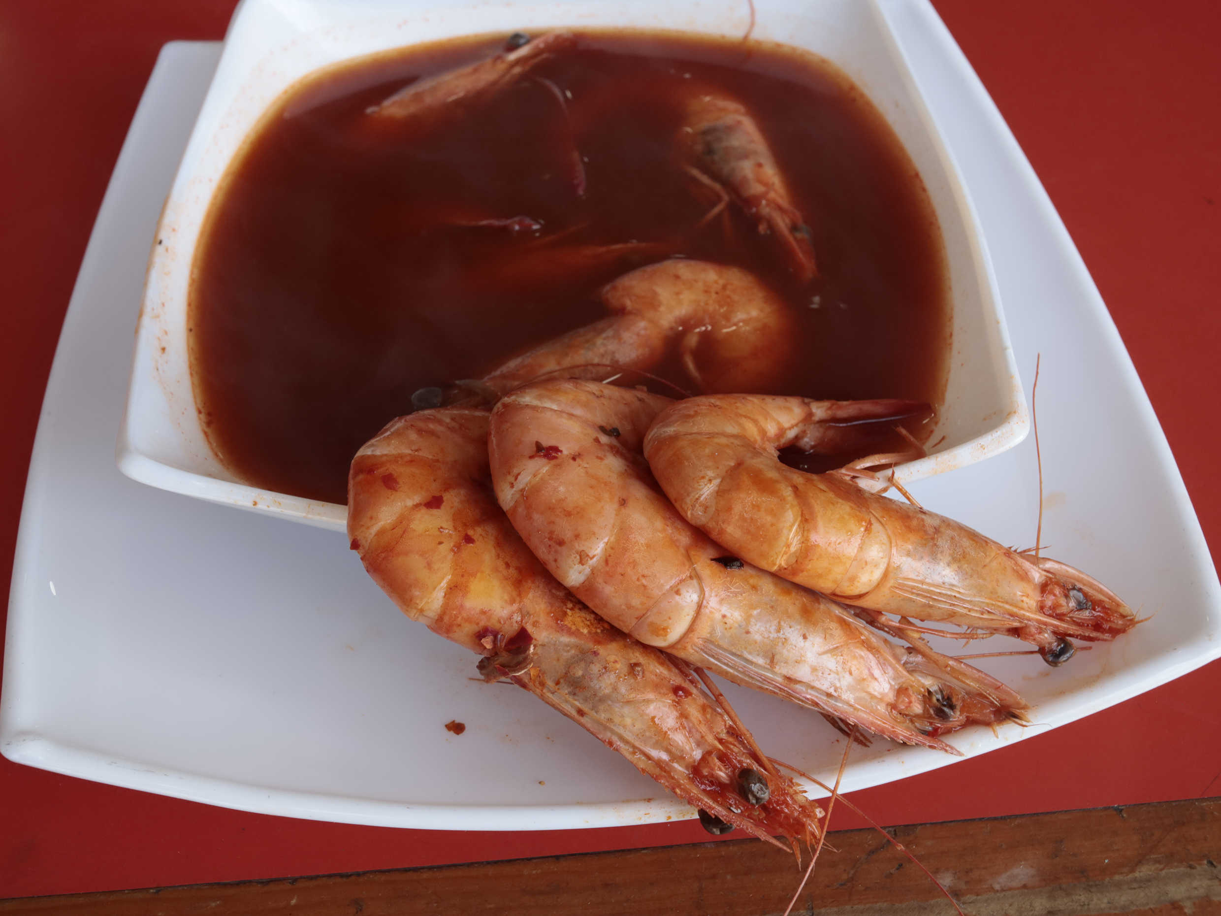 500 ml de Caldo a base de chile huajillo y 6 pzas de Camarón