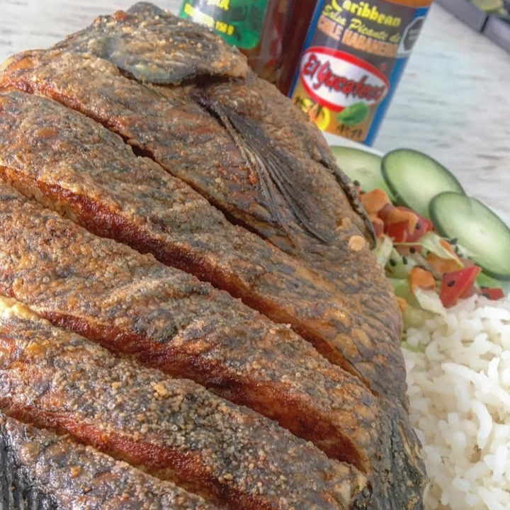 Mojarra tilapia frita de 900 g con arroz y ensalada