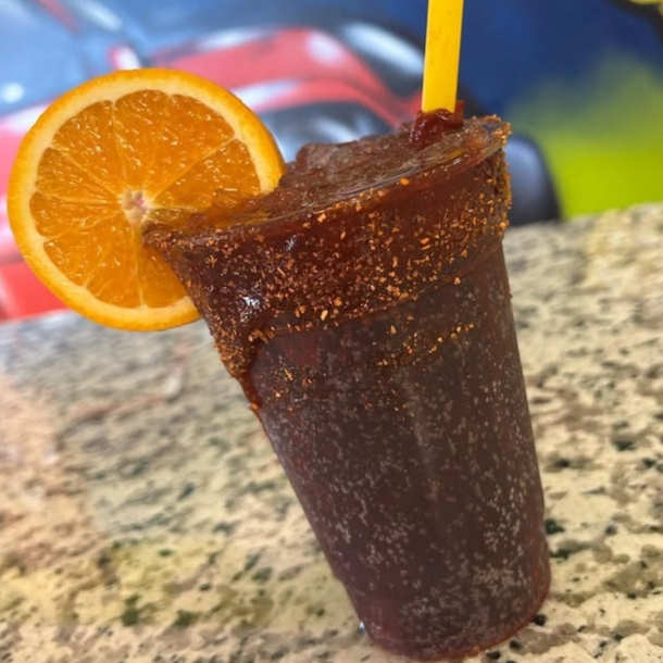 Sangría preparada con limón sal y Tajín