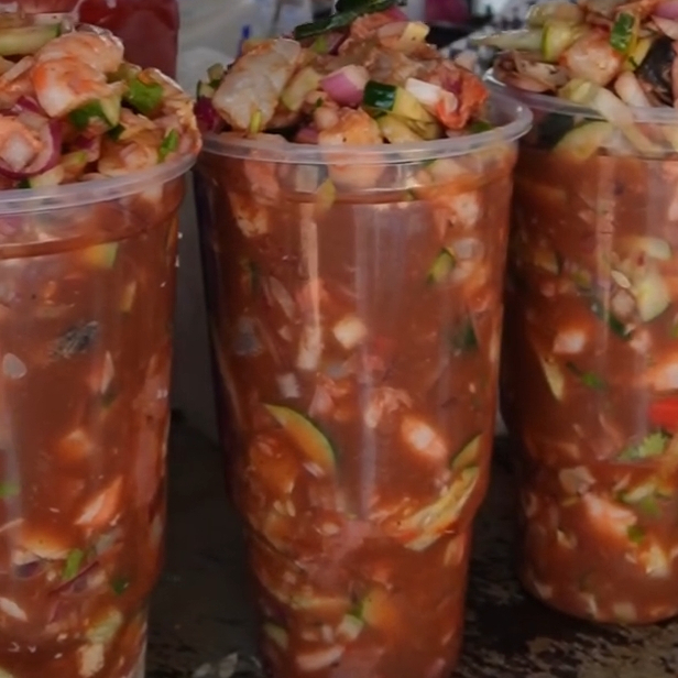 Cóctel estilo veracruzano catsup tomate cebolla aguacate cilantro