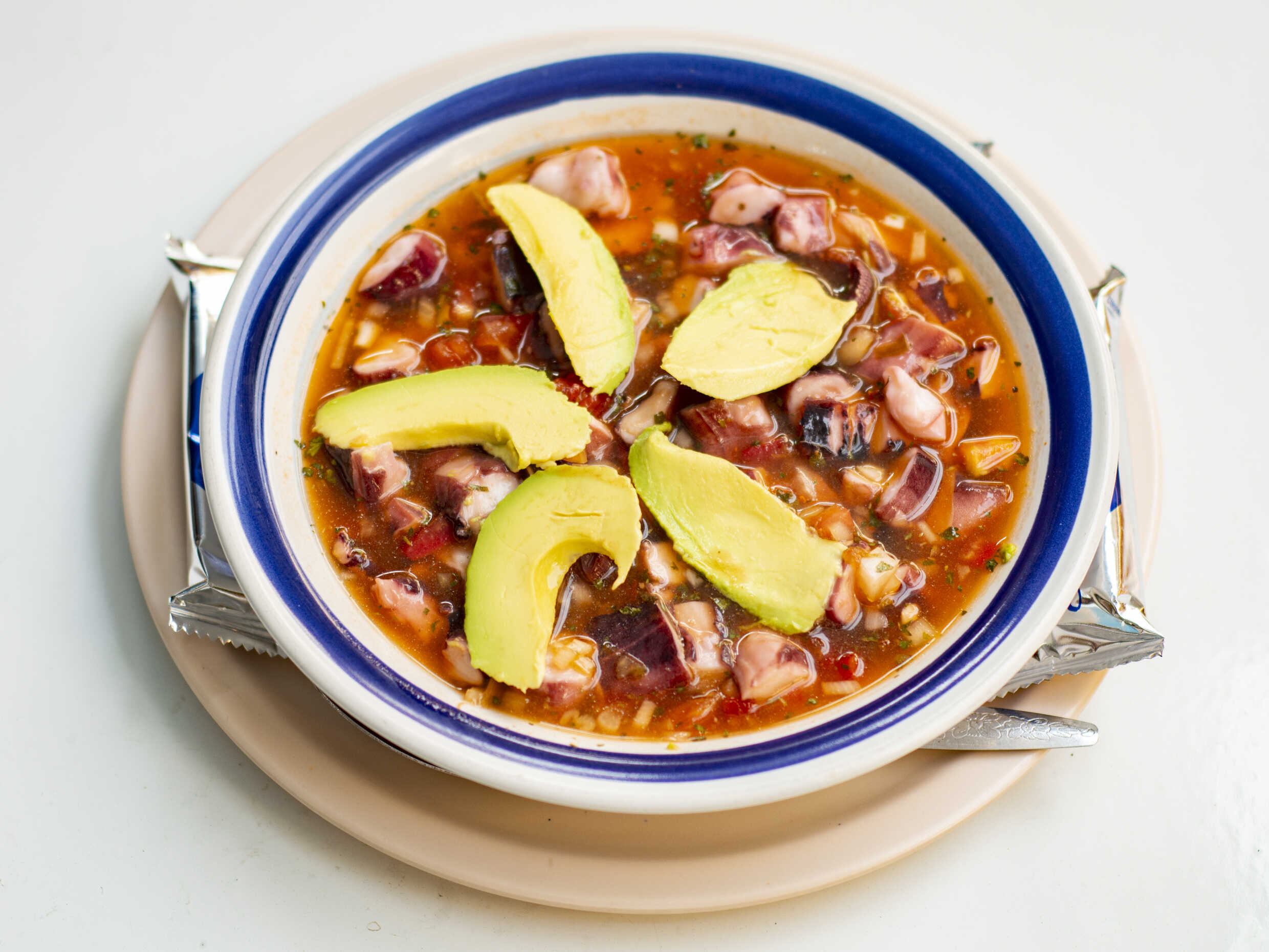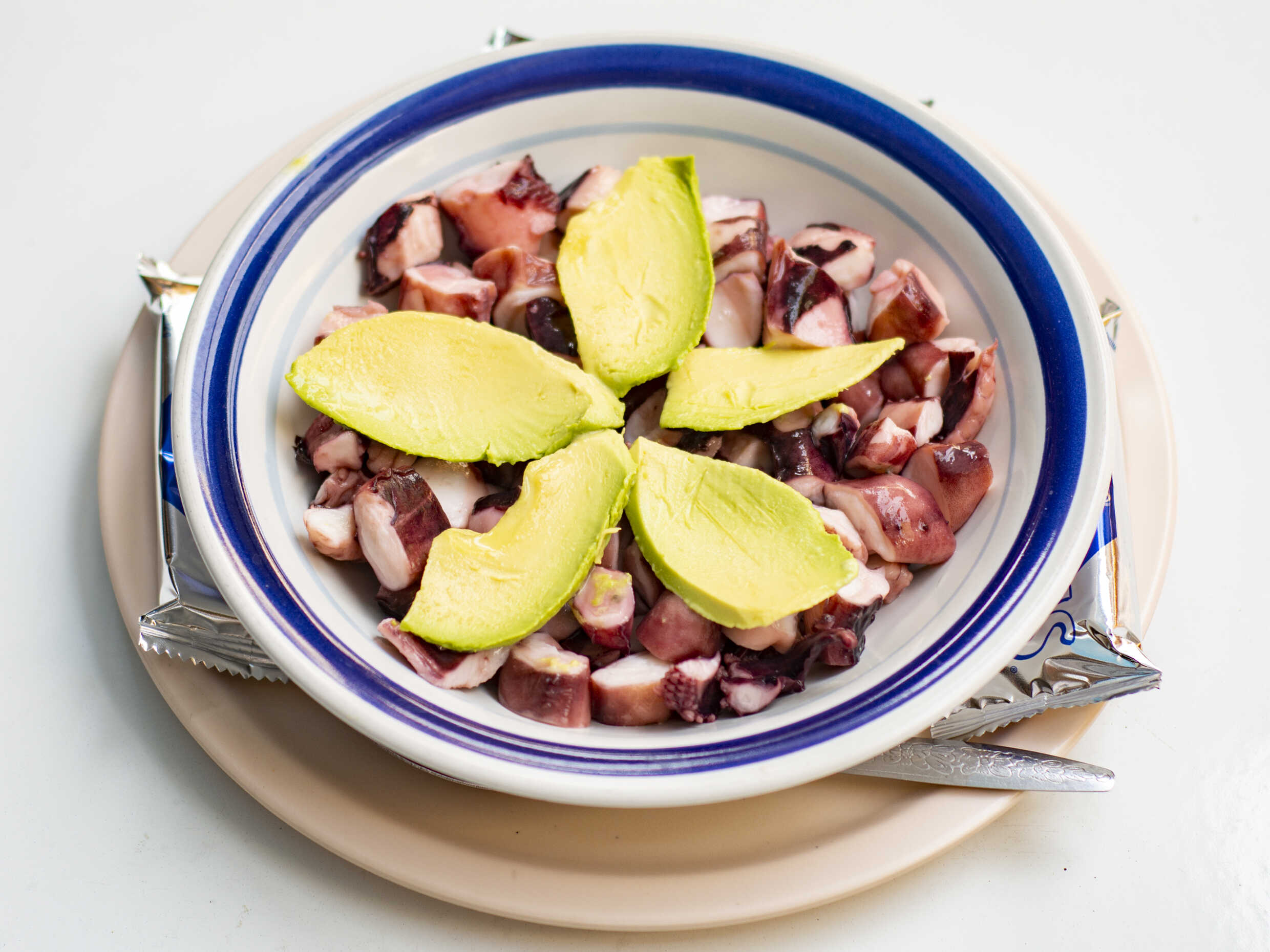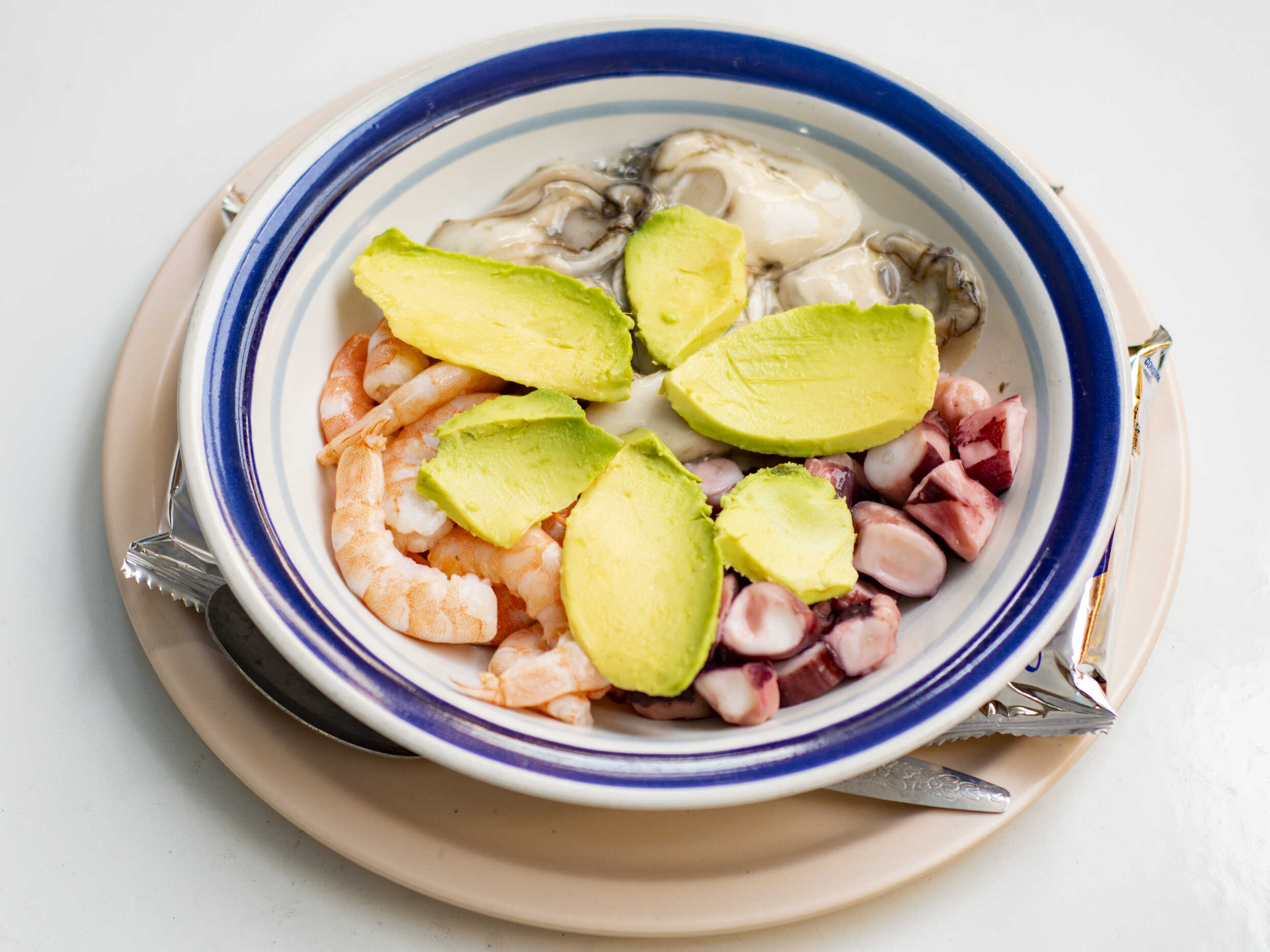 Camarón, ostión y pulpo. Solo con aguacate y limón.