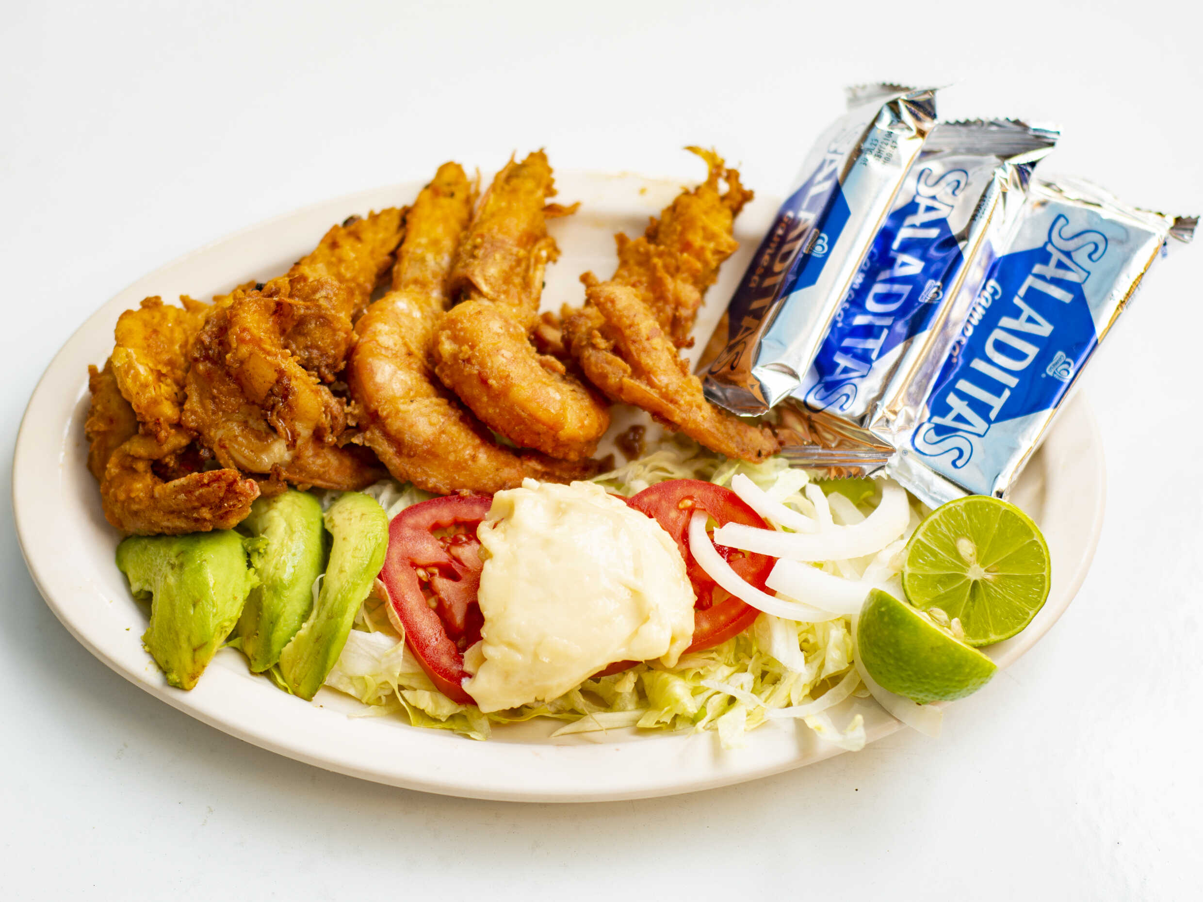 Camarón, pescado, jaiba, ostión, pulpo y camarón de pacotilla.