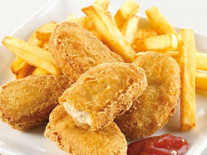 NUGGETS ACOMPAÑADOS DE PAPAS A LA FRANCESA Y ARROZ