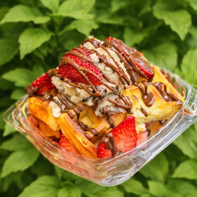 DOS WAFFLES ESTILO BELGA CON 3 TOPPINGS A ELEGIR