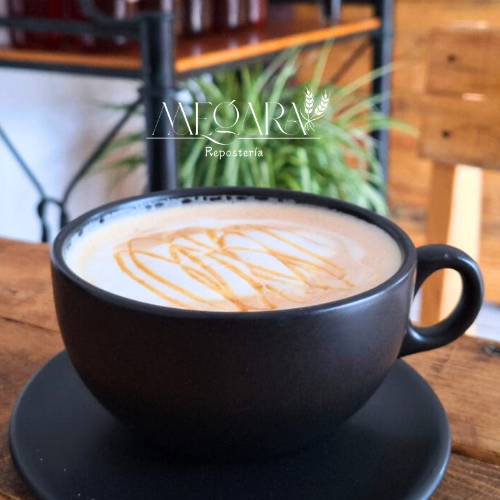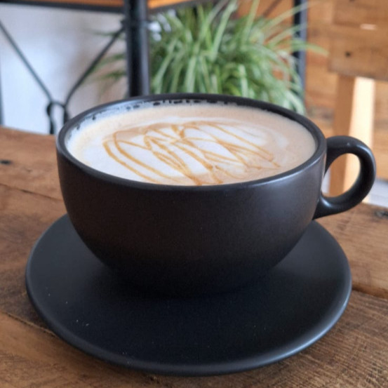 Espresso con leche vaporizada y jarabe de caramelo. Un clásico dulce y reconfortante.