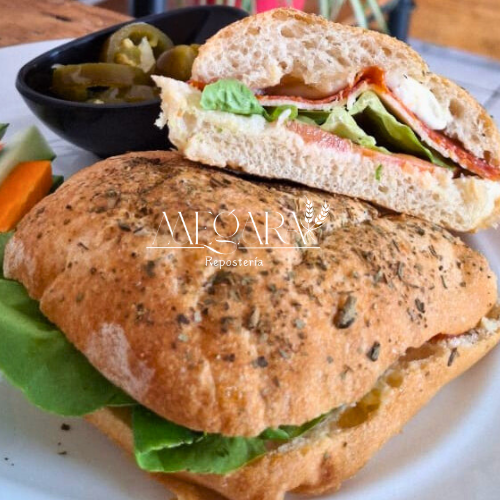 Deliciosa Chapata de finas hierbas con mozzarella fresco, carnes frias, rodajas de jitomate y lechuga.