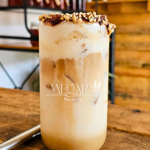 Bebida hecha a base de café, crema de cacahuate, leche, hielo y foam de vainilla.