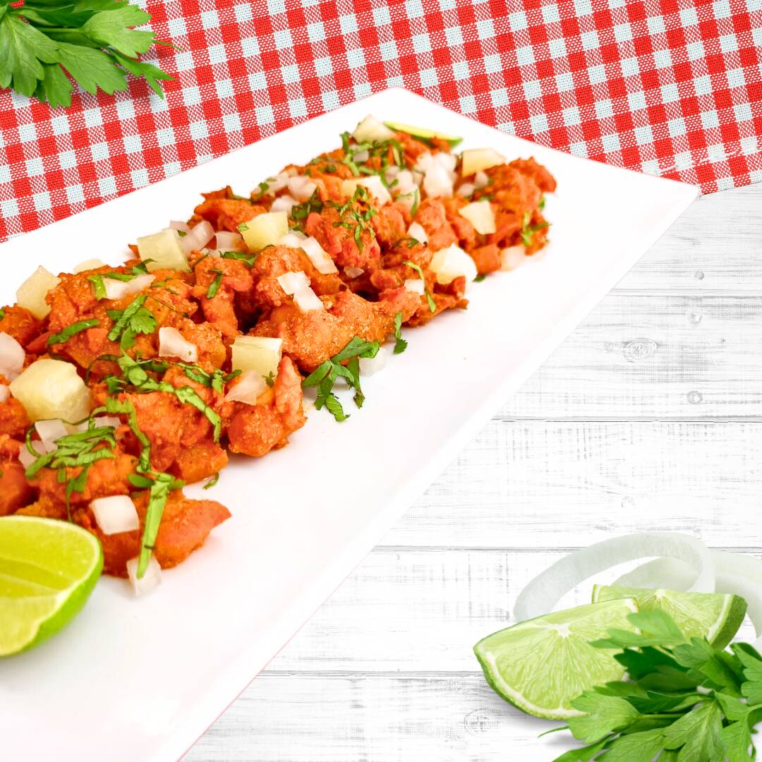 Pollo tipo pibil, 500 g. Rinde para 3 personas.