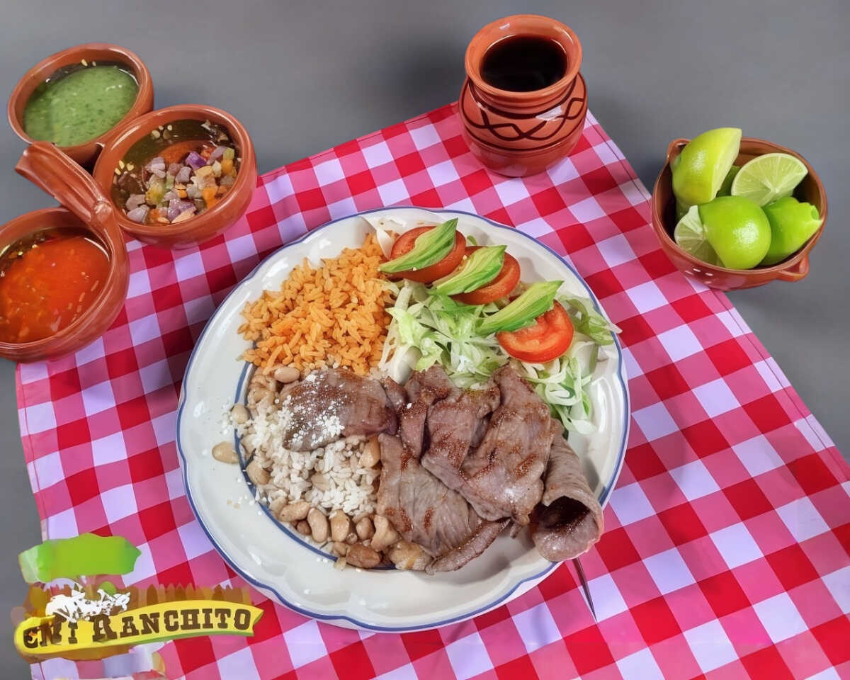 Incluye arroz, frijoles, queso, ensalada, 3 tortillas de comal y salsa
