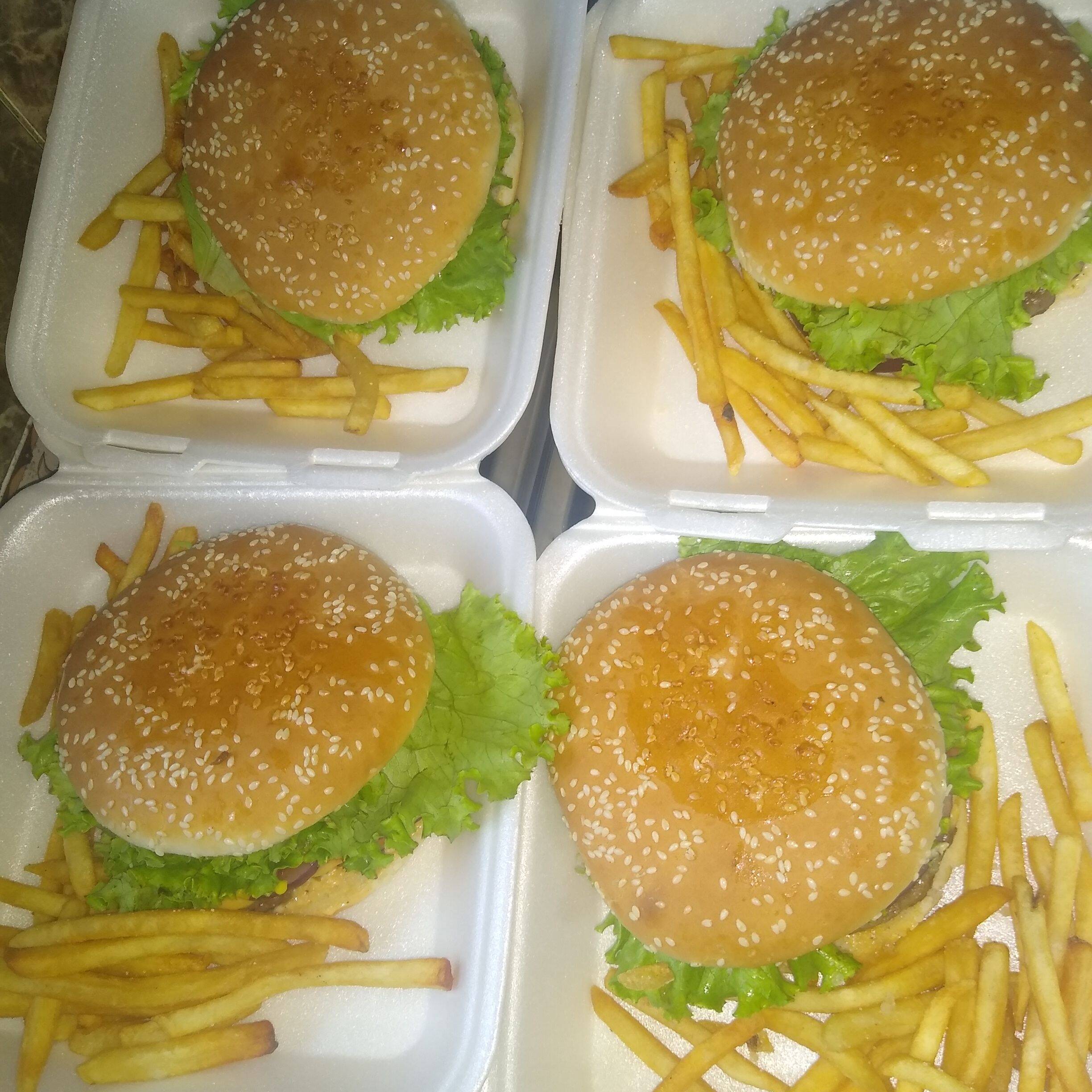 Hamburguesa con Papas y Refresco*2 + 2 Hot Dog con Papas y Refresco 400 Ml*2