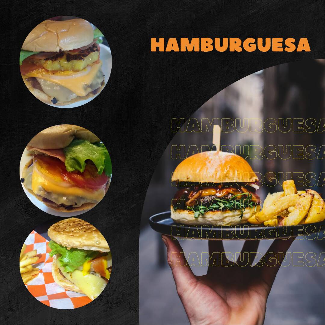 Hamburguesa con carne 100%res ,con queso amarillo jitomate cebolla lechuga italiana y jalapeños aderezo bolla lechuga italiana y jalapeños ader
