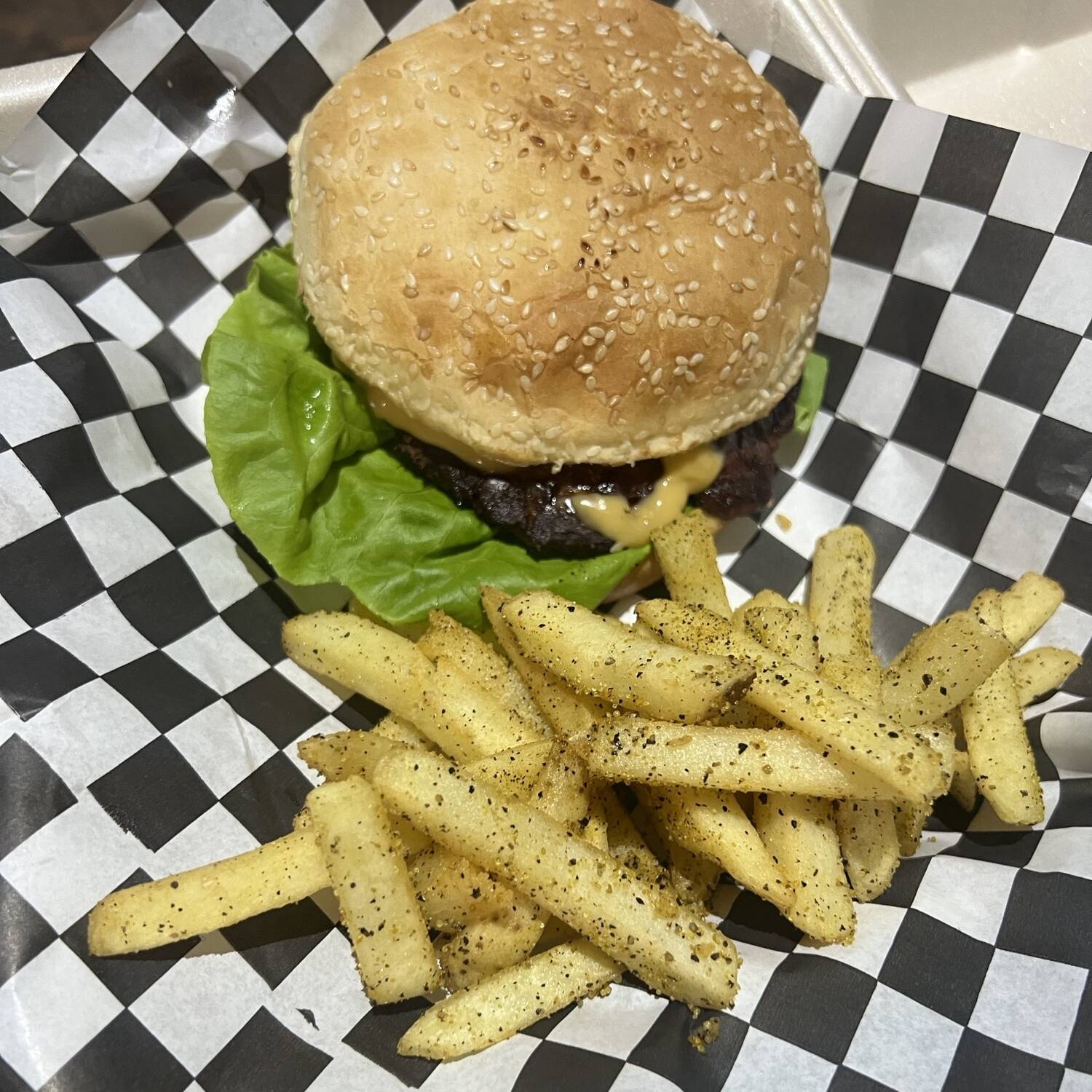 Hot dog con queso Oaxaca y tocino, acompañado con Papas