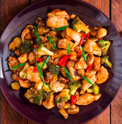 Verduras salteadas a la plancha con pollo.