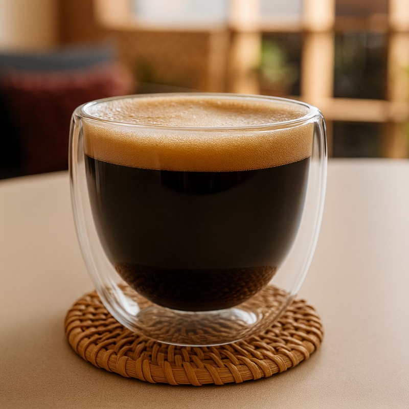 Café de grano fino molido con 80 ml de agua, café con cuerpo y aroma de concentración alta.