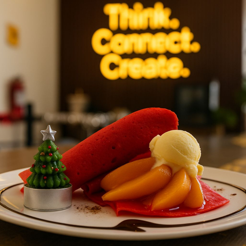 Crepa suave rellena de crema batida, plátano macho frito y durazno, con un toque de canela que realza su sabor. Un postre dulce, calientito y perfecto para darte un antojo reconfortante.