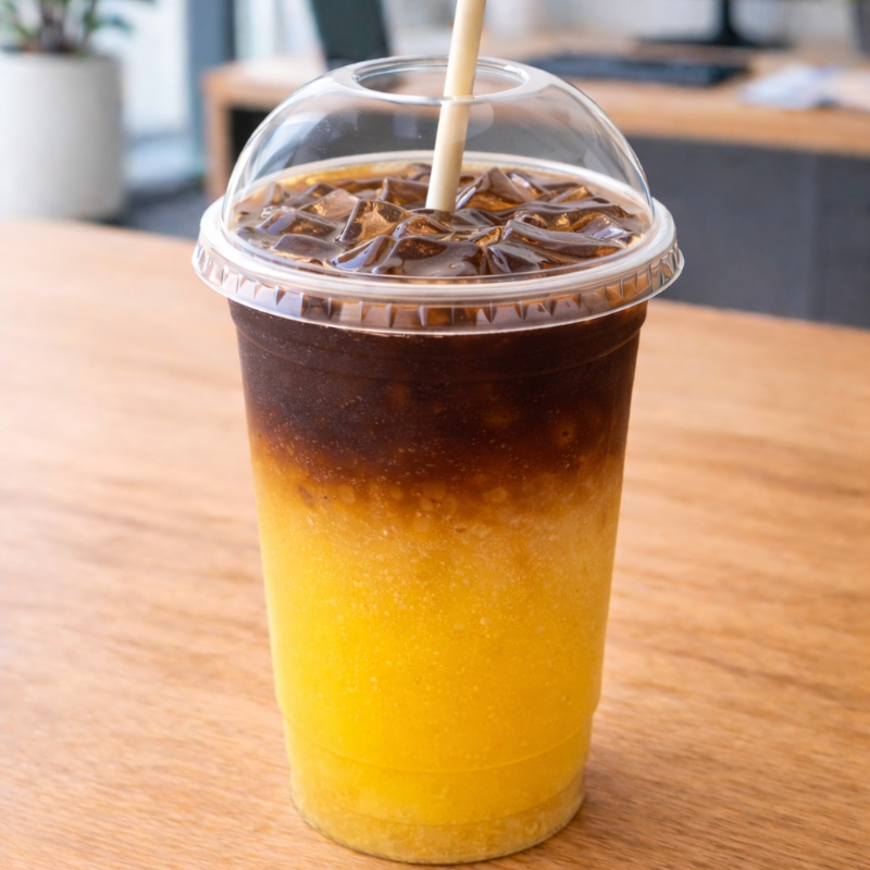 BEBIDA BASE DE JUGO DE NARANJA,SHOT DE ESPRESSO, AGUA TONICO Y HIELOS
