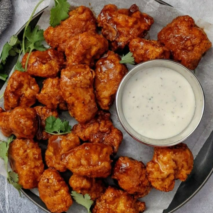Deliciosos Boneless de pollo bañados en salsa BBQ.